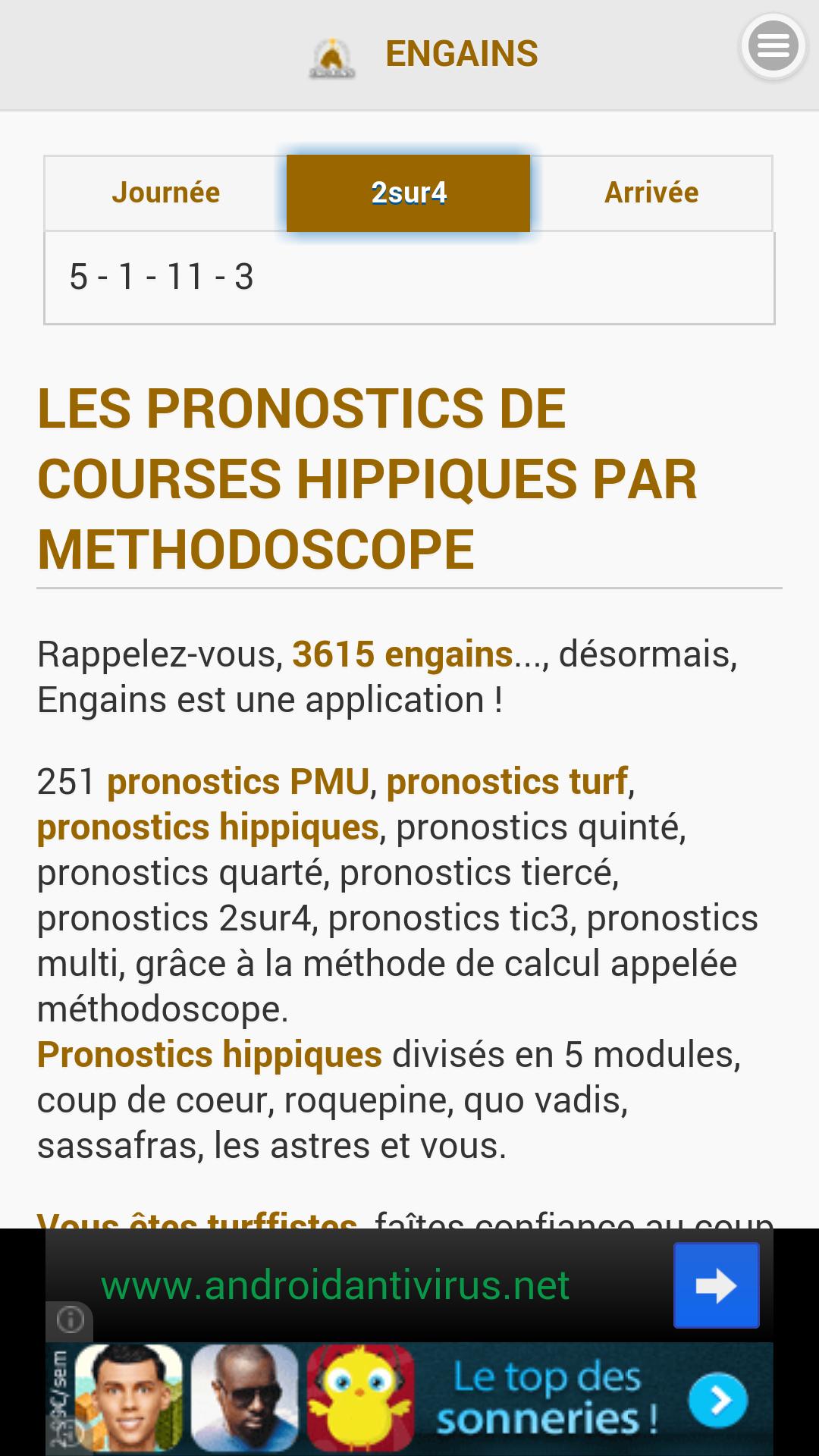 251 Predicciones gratuitas Quinté, Quarté, Tiercé, Multi, 2Sur4, Tic3 durante el día.