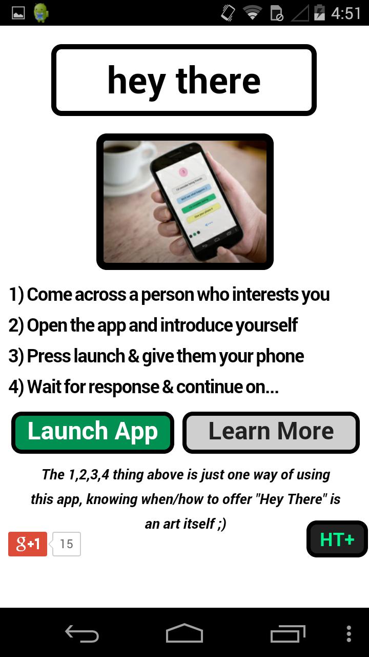 HeyThere hay una forma divertida y sucinta de solicitar fácilmente el número de teléfono de alguien que le interesa mientras está en situaciones del mundo real en las que podría ser difícil, incómodo, menos divertido o demasiado fácil de preguntar en voz alta.
