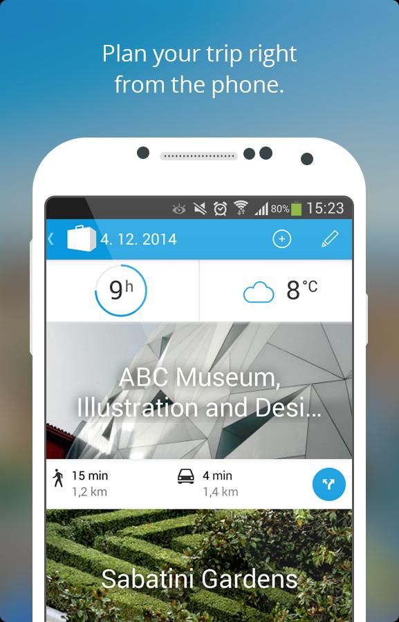 Convierta su teléfono en un planificador de viaje, cree su itinerario y úselo fuera de línea.
