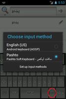 3) Al escribir, toque el pequeño icono del teclado y seleccione Pashto en el menú.