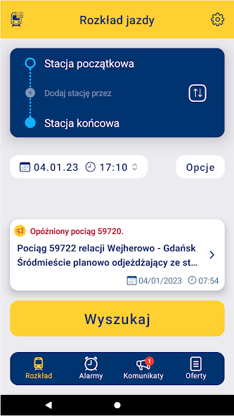 La aplicación SKM Compass contiene información actualizada sobre la estación de tren de horario planificada SKM, herramientas adicionales, como alertas, notificaciones de obstáculos en el sendero, así como información sobre los precios actuales de los boletos de tren SKM.