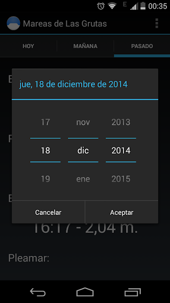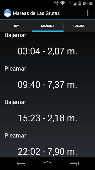 Esta aplicación le permite ver el programa de marea alta / marea baja correspondiente a Las Grutas Spa, con su información de altura respectiva. Tiene los datos del Servicio de Hidrografía Naval hasta el 31 de diciembre de 2019.