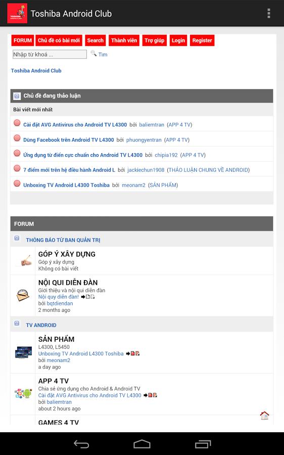 Toshiba Android Club es un foro abierto construido con el propósito de crear un patio de recreo para aquellos que aman los productos Toshiba con buena calidad y excepcional durabilidad; Especialmente la línea de productos de Android TV. La Junta de Administración es leal a la marca Toshiba durante muchos años y también a aquellos que aman la conveniencia y el versátil entretenimiento del sistema operativo Android.