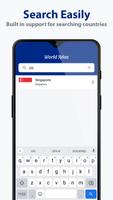 Contiene información sobre todos los países del mundo, sus banderas, mapas y mucho más.