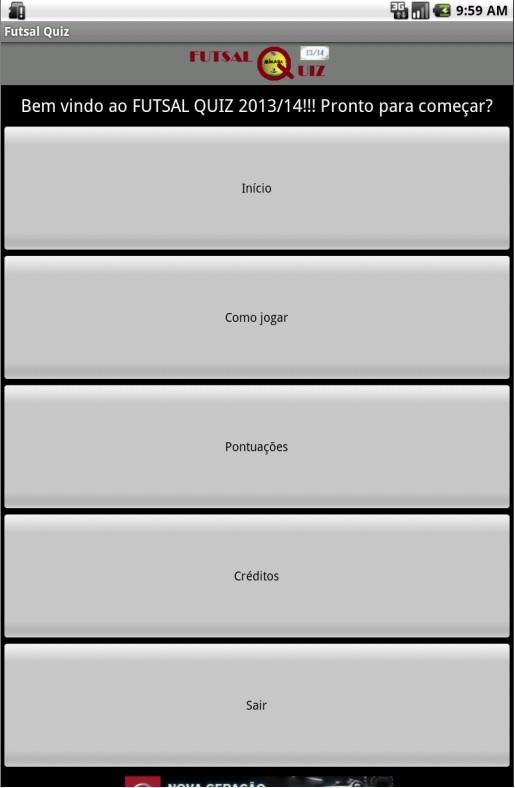 Futsal Quiz es un juego de preguntas y respuestas cuyo tema es el fútbol sala, totalmente en portugués. Se divide en 4 niveles de 6 preguntas, y es necesario alcanzar al menos 4 respuestas para pasar el nivel.