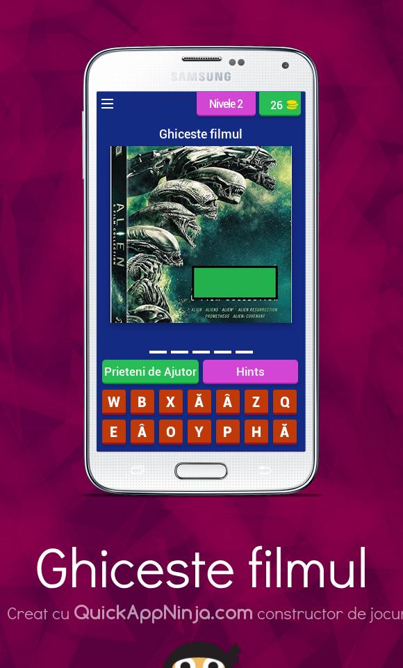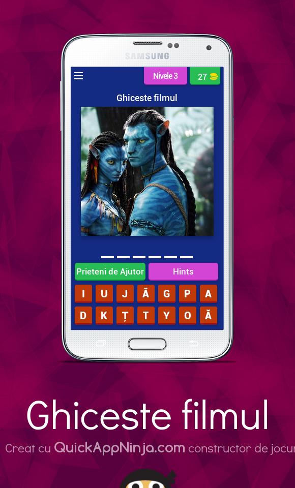 Ghiceste filmul es un juego diseñado para los fanáticos del cine, cada nivel contiene una imagen de una película que supongo, seguirán más mariquitas con más películas. Mucho BAFTA