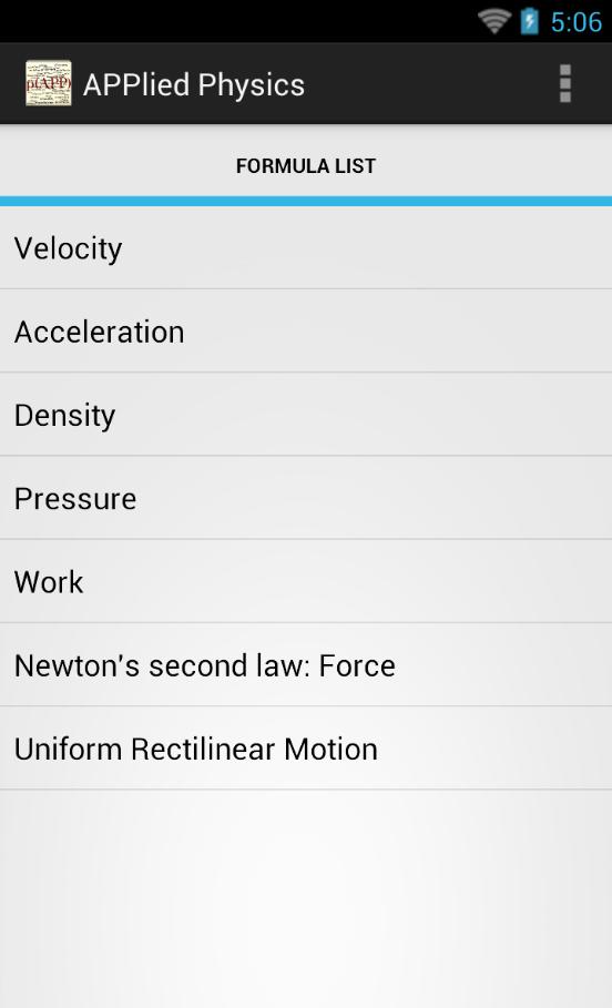 Cette application vous aide à appliquer 12 (et plus chaque mois) des formules de la physique. Il prend en charge de nombreux appareils et comprend désormais les formules suivantes: