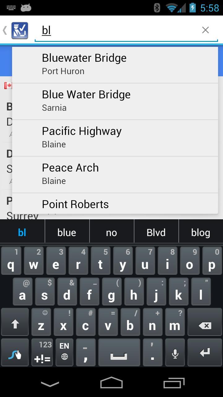 Vérifiez les temps d'attente de la bordure vers et depuis les États-Unis et le Canada avec votre appareil Android.