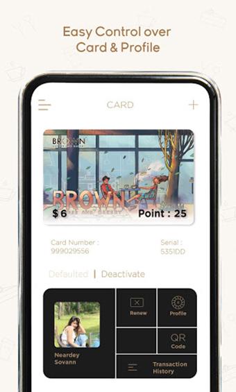 Sirotez le meilleur café du Cambodge et profitez des immenses avantages de l'adhésion de Brown en achetant notre carte physique et en installant l'application BROWN Coffee ou installez l'application d'abord et créez une carte virtuelle gratuitement. En tant que membre, vous pouvez commencer à collecter des points de tous nos magasins immédiatement à chaque fois que vous achetez. Acheter notre carte physique, cela vaut la peine d'avoir une œuvre d'art cool dans votre sac à main ou votre portefeuille, sinon télécharger l'application et créer une carte virtuelle, pas de frais d'entrée ou pré-top requis!