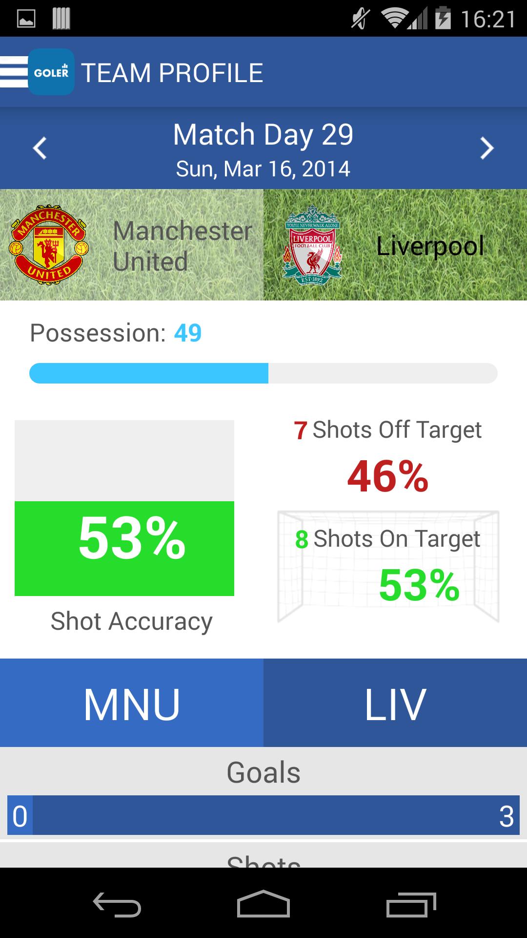 Goler est l'application de football numéro un pour la Premier League anglaise. Affiché via des infographies en direct, Goler vous donne un aperçu unique de l'ensemble du tournoi. Recevez des mises à jour en direct, suivez les matchs, les équipes et les joueurs et suivez les résultats, les nouvelles, les statistiques et plus encore!