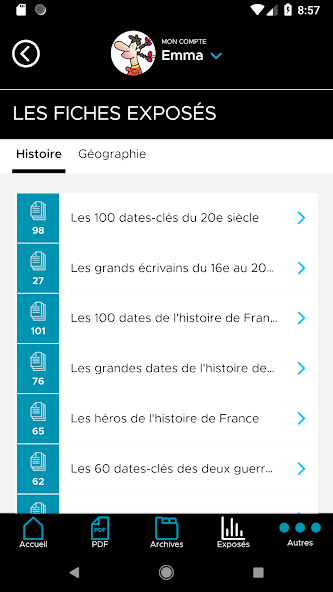 - Présentations: plus de 500 feuilles sur l'histoire et la géographie, idéales pour les révisions Brevet / BAC.