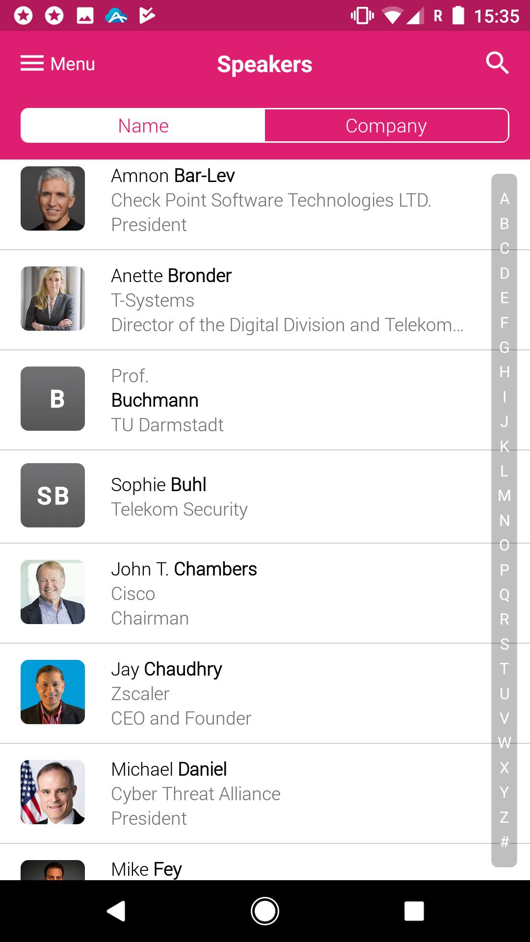 Visitez-nous au Congrès du Telekom Magenta Security Specialist du 20 au 21 juillet 2017 à Munich et attendez avec impatience un vaste programme de soutien. Avec notre application, vous avez la possibilité de planifier, de coordonner et de garder un œil sur vos jours de conférence personnels. L'accès aux informations générales actuelles sur tous les sujets et leurs haut-parleurs ainsi que la possibilité d'un échange interactif sur site sont donc garanties.