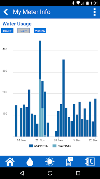 Mes informations de compteur donne accès aux informations et notifications des compteurs intelligents des services publics des services publics participants. Si votre utilitaire est connecté au système de portail à https://getmymeter.info, vous pouvez également accéder à vos informations via l'application My Met Info. Voir les tendances d'utilisation, les données horaires, quotidiennes et mensuelles, les antécédents météorologiques locaux, les alertes de fuite, les notifications d'utilisation et autres informations pertinentes de compte. Vous pouvez également utiliser l'application pour soumettre des rapports de service marqués par location avec une photo au service client de votre utilitaire.