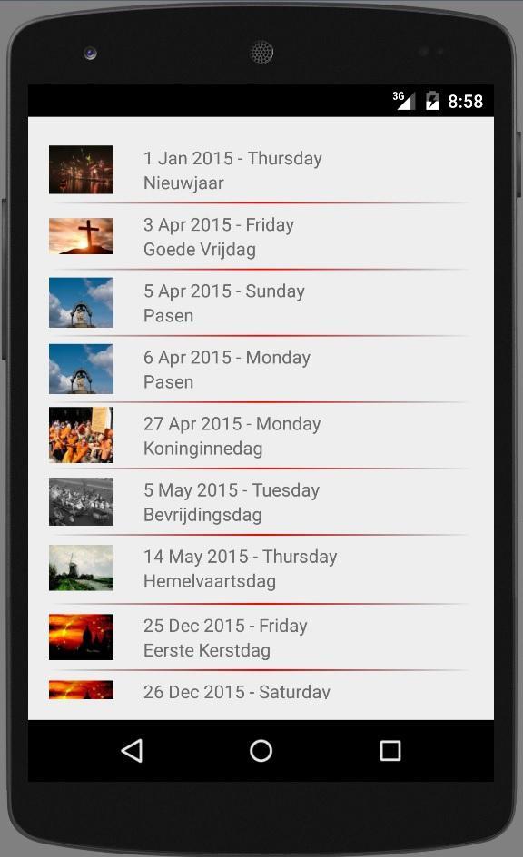 Pays-Bas / Néerlandais / Holland Holidays Application avec un look riche et une convivialité.