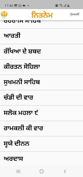 La langue de cette demande est punjabi. L'application contient les Bani suivantes: