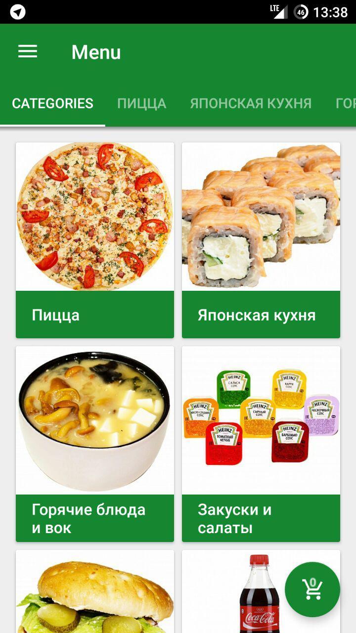 Comment passer une commande dans l'application « Taxopizza »: sélectionnez vos positions préférées dans le menu, ajoutez-les au panier et accédez à l'écran de commande (en appuyant sur l'icône du panier).