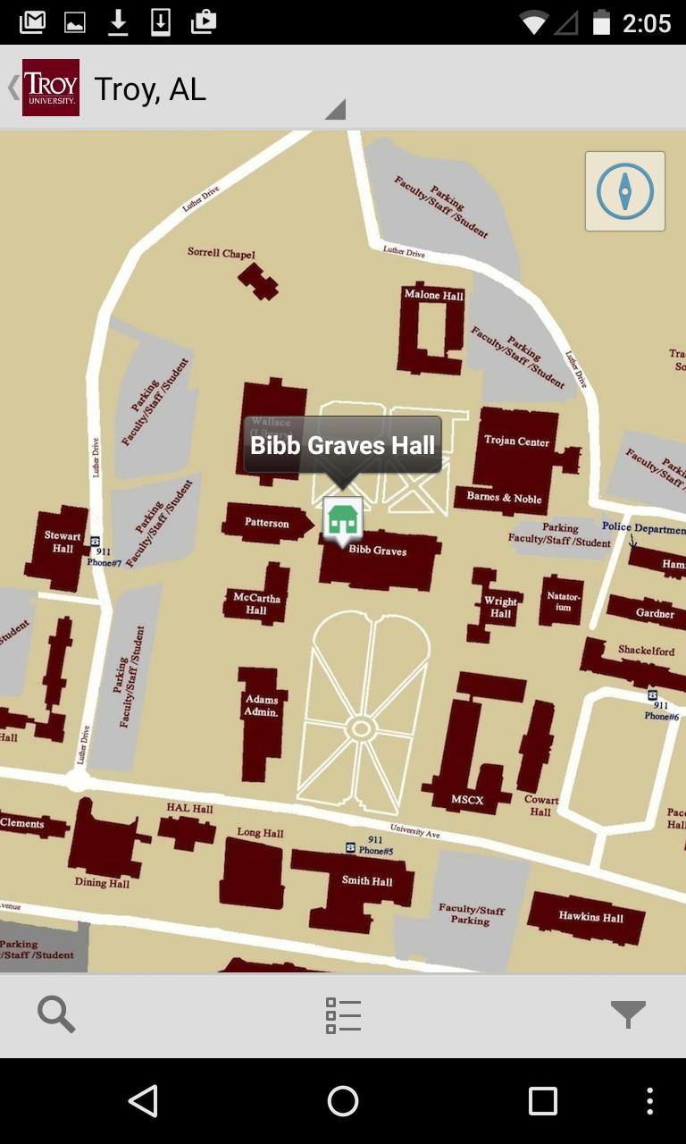 Cartes: Voir une carte d'un campus TROY et voir les endroits que vous voulez aller.
