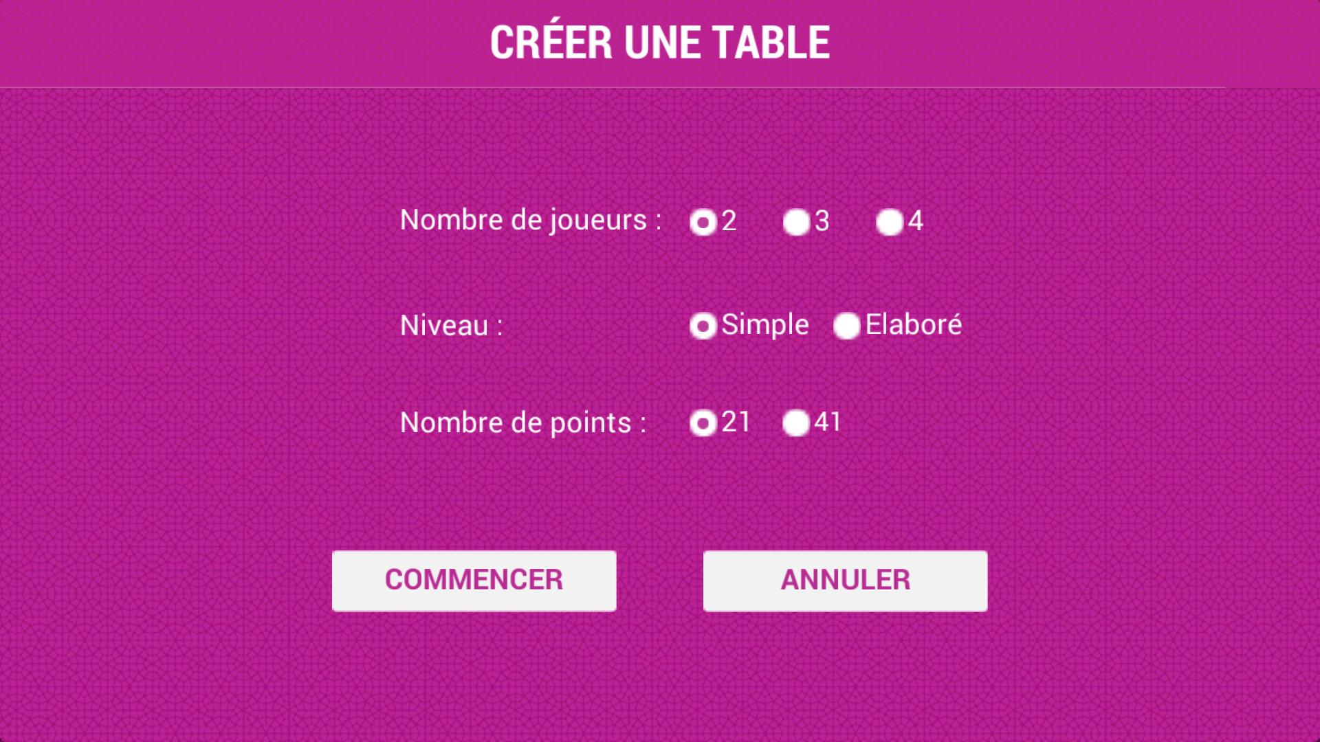 Le jeu se joue à deux, trois ou quatre joueurs. Chaque joueur joue individuellement, même pour les parties à 4.