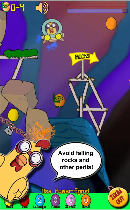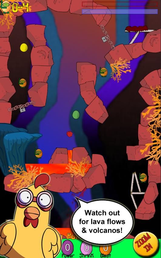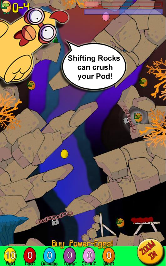 Le sous-marin polyvalent de Poulet Poulette doit passer par des niveaux de labyrinthes sous-marins de la caverne océanique remplis de récifs coralliens et d'autres dangers graves. Le péril attend à chaque tour!