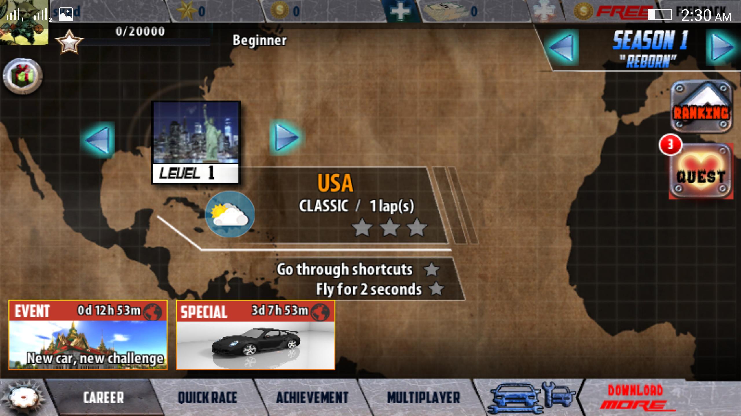 - Quick Racing: select your favorite car, overcome super opponents from many countries.