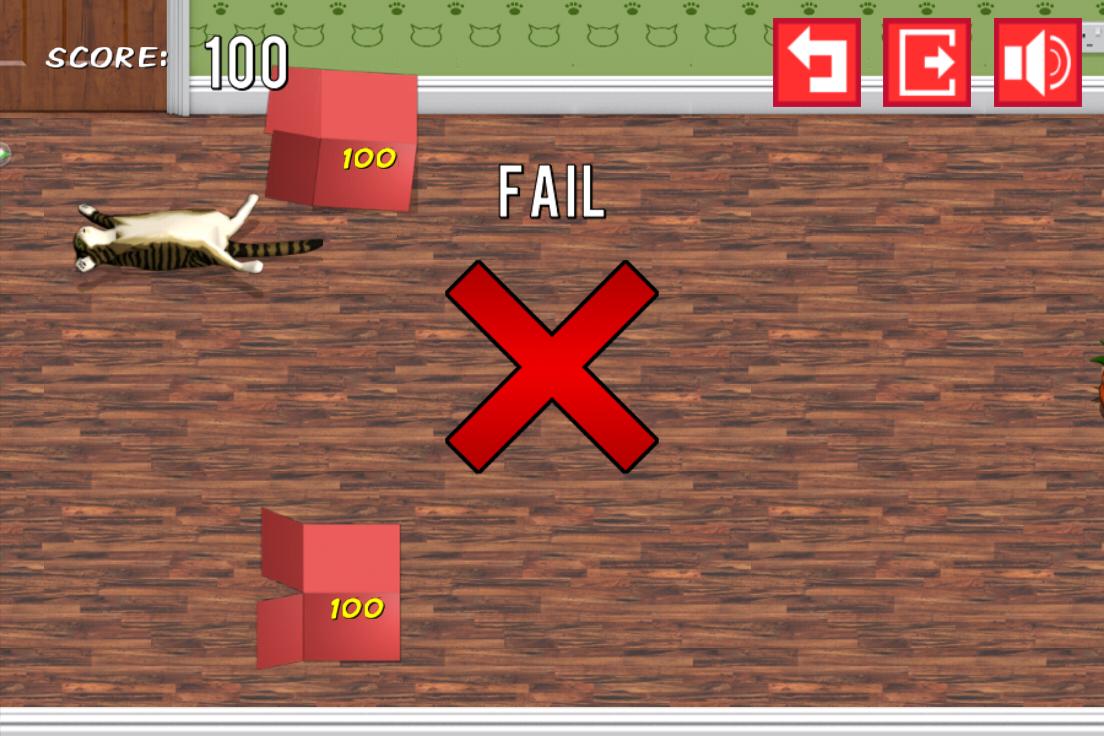 Launch the cat into the box! Eat the cookies and cheezeburgers, aim for the bonuses, avoid the obstacles and go for the biggest score in each room.