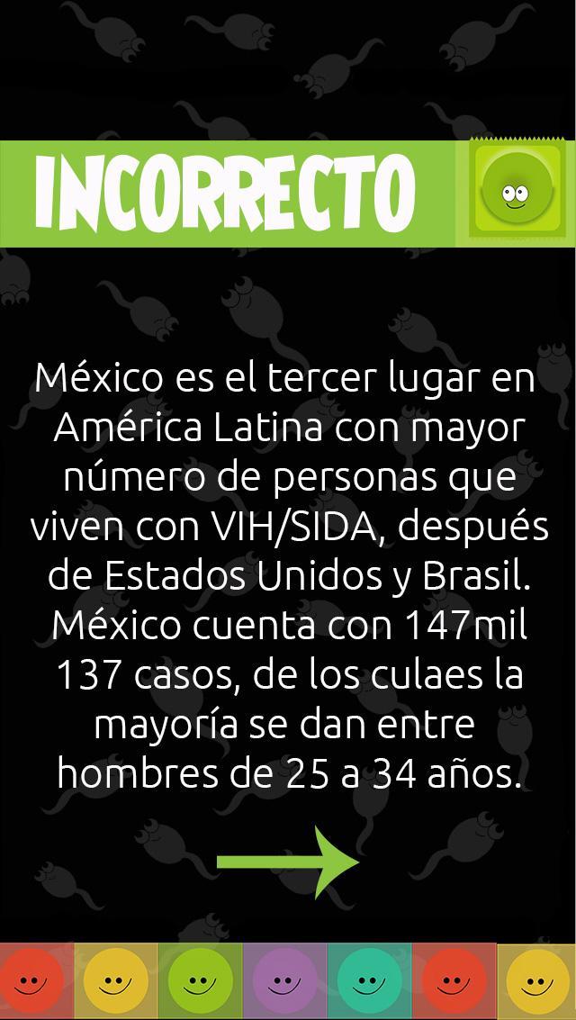 Condones con cerebro is a trivia designed to provide basic sexual health information. It contains 4 categories that will be selected randomly, once 10 questions have been answered, you can know your results.