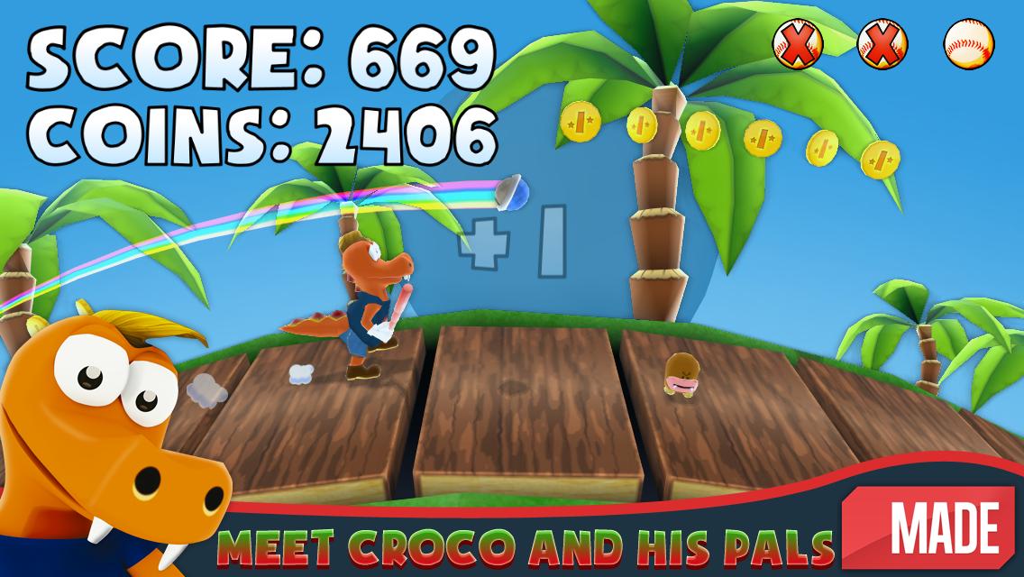Make Croco run a homerun to get additional points, collect stars and coins to buy awesome items in the shop.
