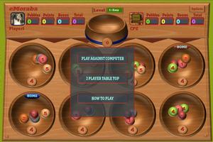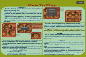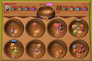 In this rendition the game has been designed around a wooden board with nicely cut bowls. The game play is the traditional one except that there are enhancements in the scoring that totally transforms the game into a highly charged contest between human and machine.