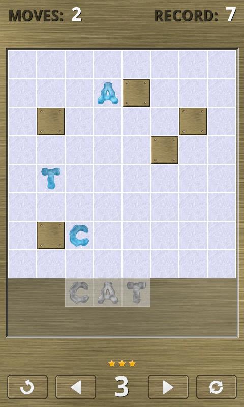 FrostyWords is a quite simple and addictive puzzle game. The goal is to put each glacial letter from the board by sliding it into right place below the board.