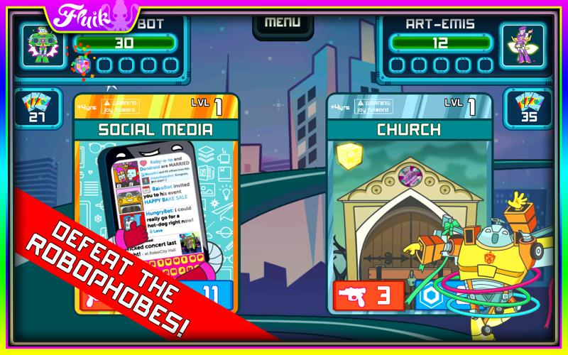 Thwart your foes with a stunning Ice Dance! Defeat your opponents with the shock of a Hipster! Perform a Half Time show to distract your enemies! Build a Pride Flag to spread awareness and fight the evil Robophobes!