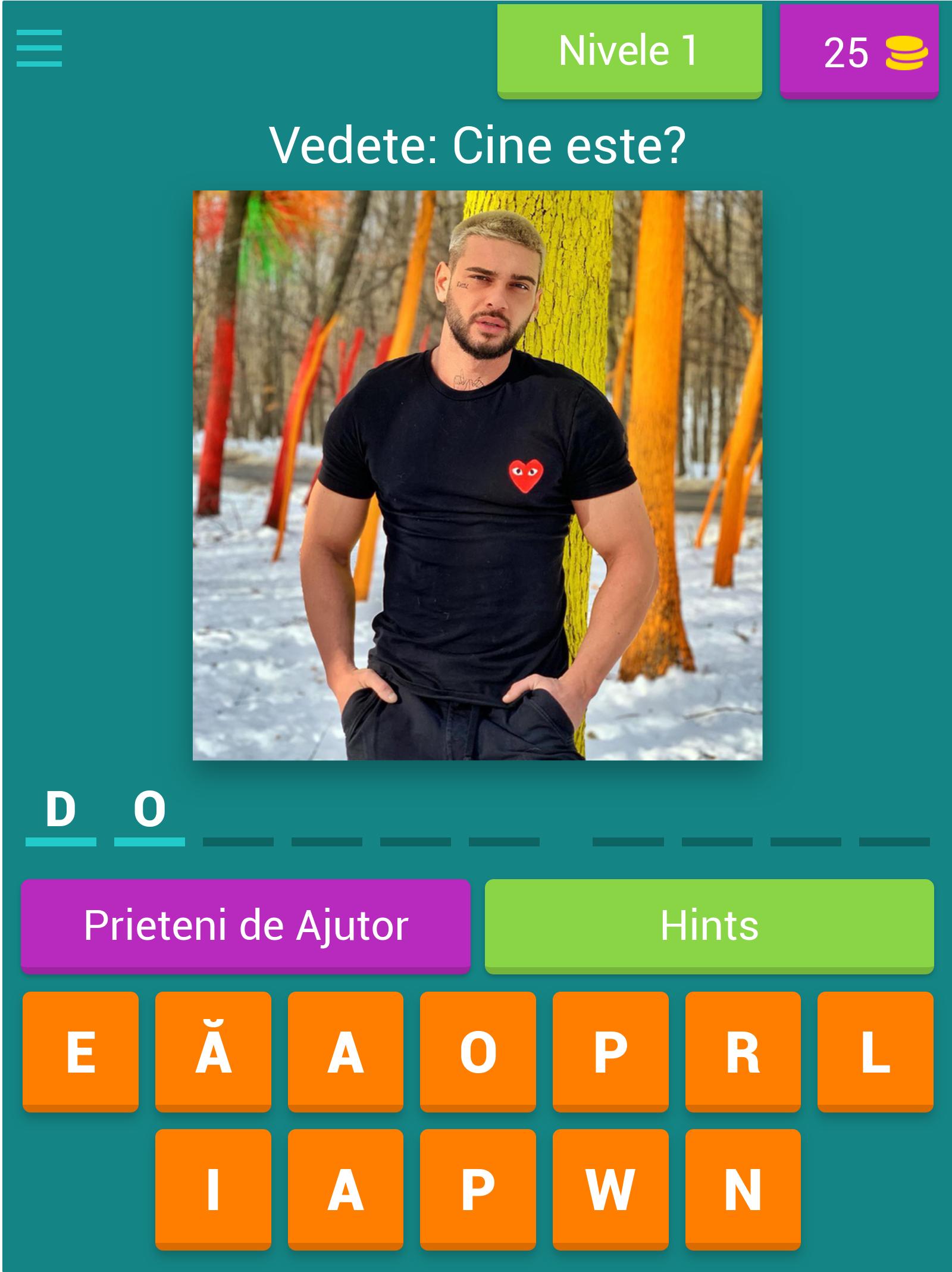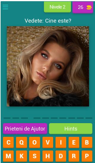Guess the star in Romania! Start the test right now and see if you can pass the 40 levels I have prepared. If you realize who is in the picture, then you are a very good riddle and for this, you will soon have more applications like (even with distorted stars or why not for example with cars, celebrities from other countries).
