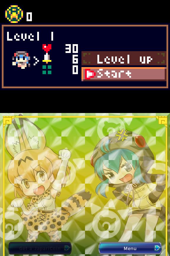 In this application, you can choose 'Tsuchinoko' 'Serval' 'Bag-chan" "Toki". Try playing with your favorite friends.