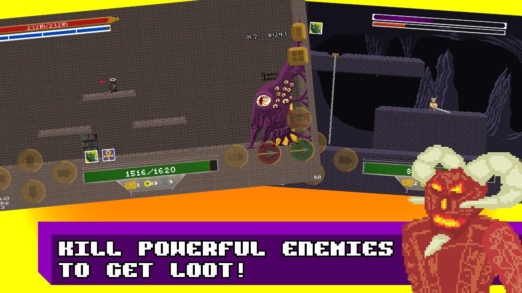 - Collect keys from dead enemies and use them to open chests that contain items to make your character more powerful.