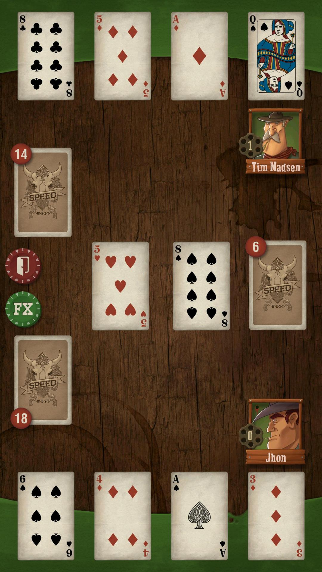 Speed West is the evolution of the well known card game Speed! You maybe know this awesome 2-player card game as Spit, Slam or Chin.
