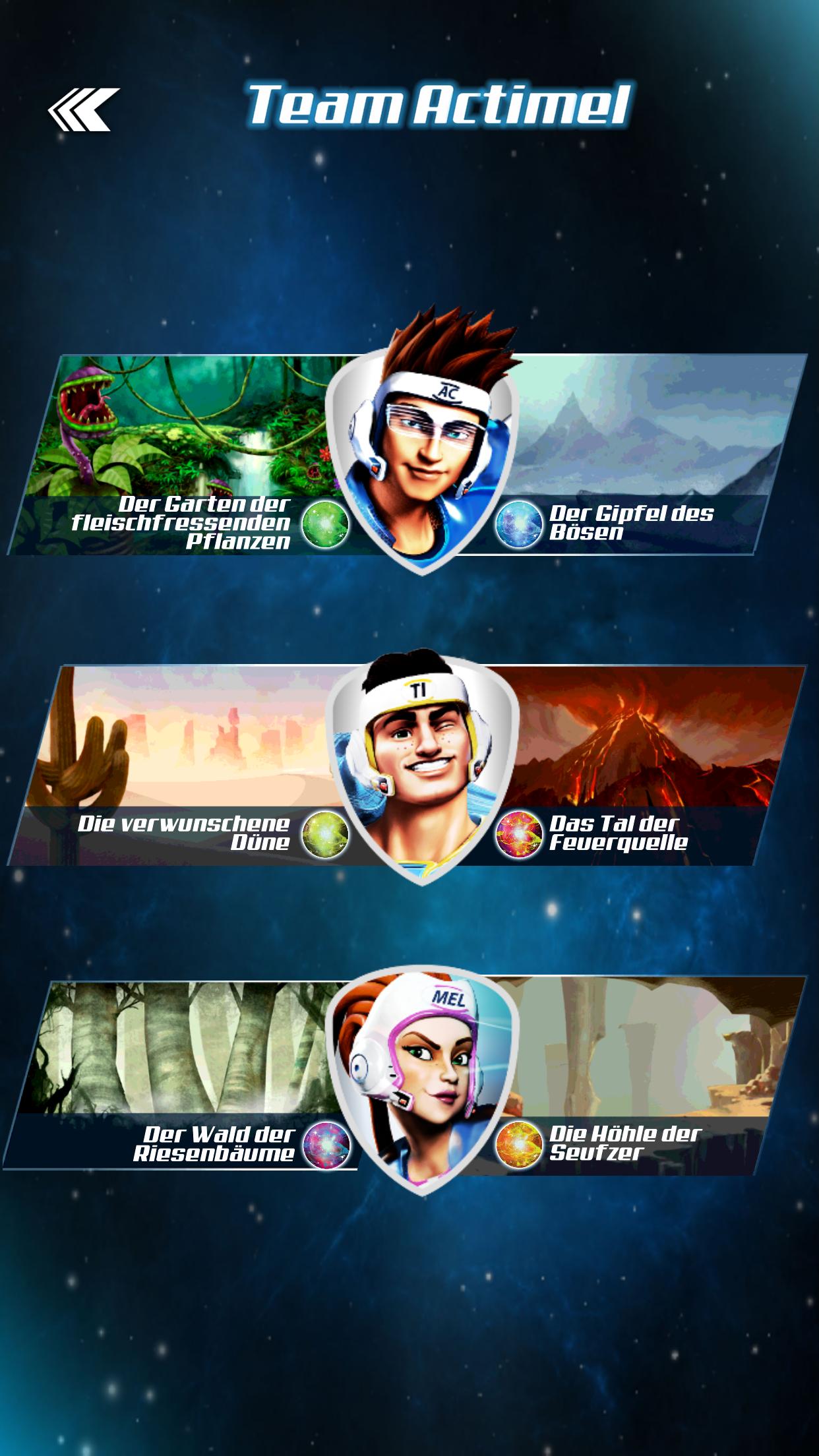 Malactic has split up the heart of the planet into many small actist stones, which are now distributed all over the planet. The planet threatens to go under. Only the ACTIMEL team and you can save it!