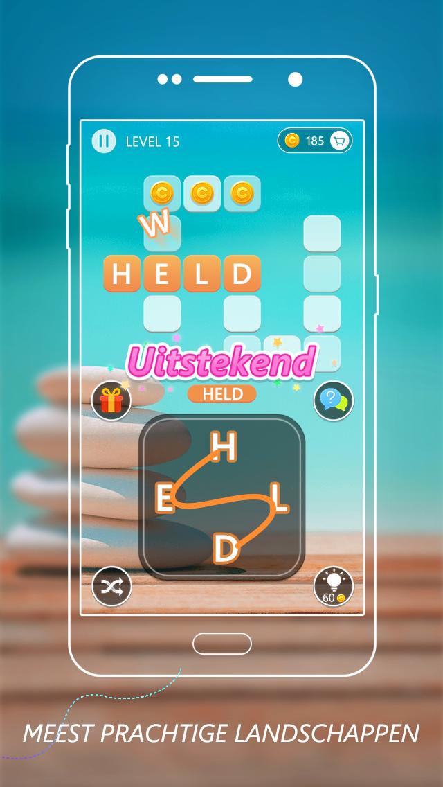 Woord Reis is a particularly pleasant crossword puzzle & word search adventure with beautiful landscapes! You will get a great visual experience during the game. And it will push the limits of your brain with more than 2000 exciting puzzles!
