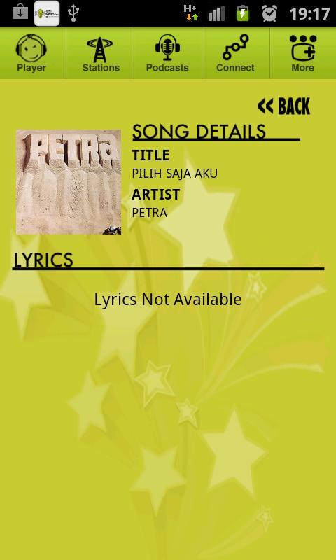 Untuk mengakses tampilan lirik, ketuk ikon album ketika ikon "Plus" ditampilkan di sudut album art. Jika tidak ada ikon "plus", itu berarti bahwa informasi meta untuk lagu saat ini tidak tersedia
