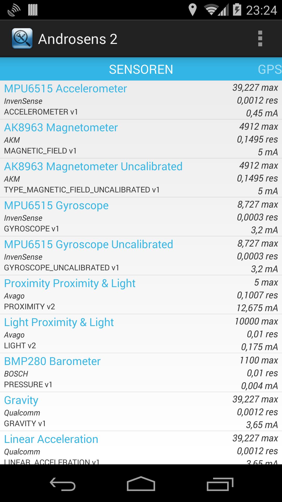 Hal -hal baik hanya menjadi lebih baik, sekuel yang telah lama ditunggu -tunggu untuk androsens kotak alat sensor gratis terbaik telah tiba. Androsens 2 menampilkan semua informasi sensor dan GPS yang tersedia secara gratis dan mendukung perangkat Android Wear sekarang! Lihat semua sensor perangkat Anda beraksi, terlepas dari vendor (Bosch, Qualcomm, AKM, Avago). Anda akan melihat data sensor langsung membuat grafik dinamis. Giroskop, cahaya, akselerasi, barometer dan banyak lagi sensor dapat ditampilkan. Setiap sensor perangkat Anda dapat dilihat. Lacak GPS yang terlihat dan satelit Glonass dalam jangkauan, gratis. Lihat data GPS NMEA. Semua yang Anda inginkan ada di sini, sekarang! Dan sebagai bonus, Anda juga dapat mencatat setiap bagian data ke kartu SDC untuk analisis nanti. Data yang dicatat adalah awal yang bagus untuk membandingkan kemampuan sensor/GPS dari berbagai produsen ponsel. Pelacak sensor terbaik adalah kembali, sekali lagi gratis, untuk Anda, untuk bersenang -senang! Sekarang Anda dapat membandingkan kemampuan GPS perangkat Anda dengan teman -teman Anda. Data satelit GPS ini dapat diekspor ke file CSV di SDCard Anda. Adfree dan open source -nya! Gpl v3 https://code.google.com/p/androsens2/
