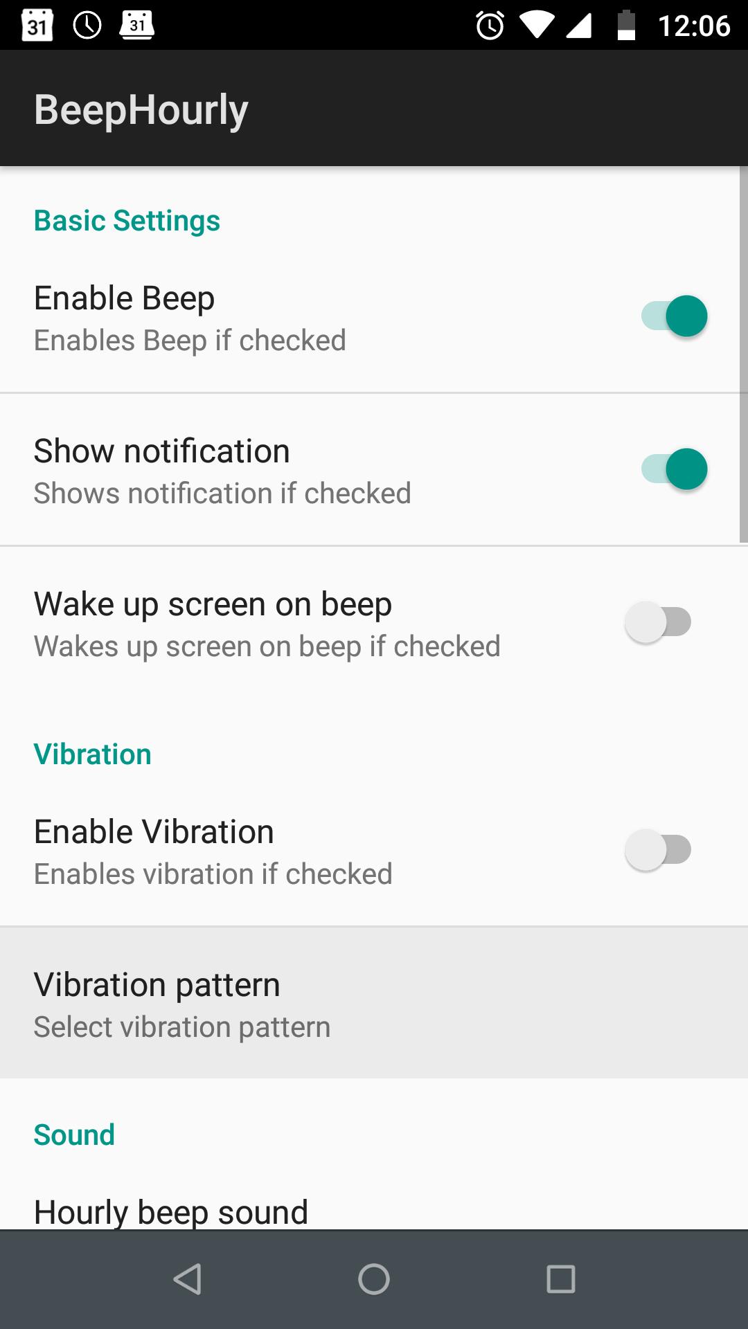 Anda dapat menggunakan aplikasi ini untuk mendapatkan lonceng per jam atau bip seperti jam tangan lama Anda. Lonceng dapat dikonfigurasi untuk menelepon setiap jam, setengah jam atau seperempat jam.