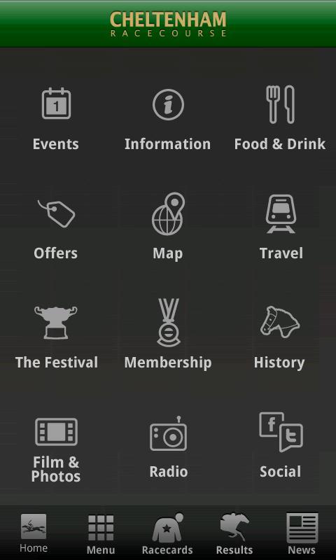Anda dapat mendengarkan radio Cheltenham, menonton video arsip balap serta melihat arena balap, peluang terbaru, prediktor hasil dan berita terbaru dari Cheltenham dan setiap kursus balap di Inggris dan Irlandia.