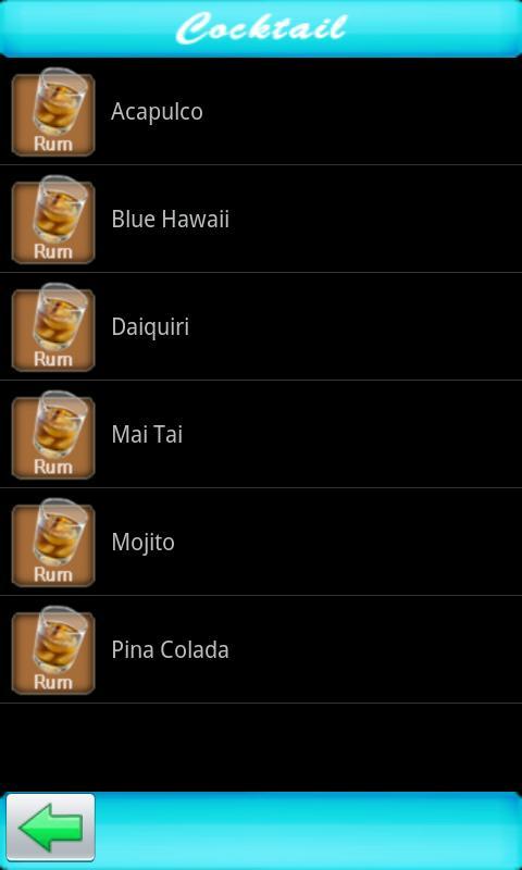 Nikmati daftar koktail. Aplikasi ini akan memberi tahu Anda cara membuat koktail, bahan apa yang Anda butuhkan untuk membuat koktail. Ini termasuk resep klasik seperti Acapulco, Blue Lagoon, Margarita, Martini dll.