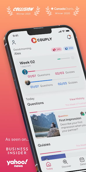 Unduh Couply untuk membantu Anda menjadi mitra terbaik bagi kekasih Anda. Couply mendorong komunikasi, pemahaman, dan membantu Anda masa depan-bukti hubungan Anda!