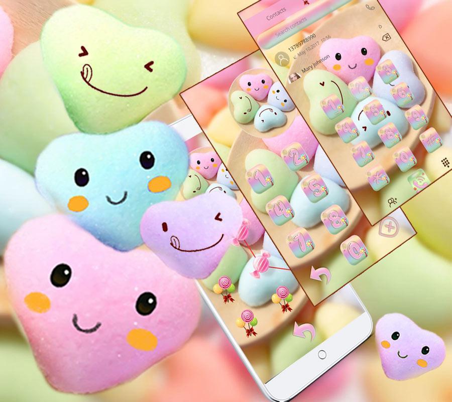 Tema cinta permen lucu memiliki layar kunci permen kawaii dengan paket ikon bulu kartun. Tema seluler DIY dengan wallpaper senyum permen lucu! Wallpaper hidup DIY dengan gambar senyum permen kawaii dan keyboard dialer telepon permen manis yang indah.