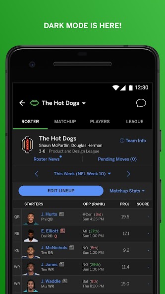 - Daftar, konsep tim fantasi Anda, edit lineup Anda, tambahkan pemain, dan buat perdagangan.