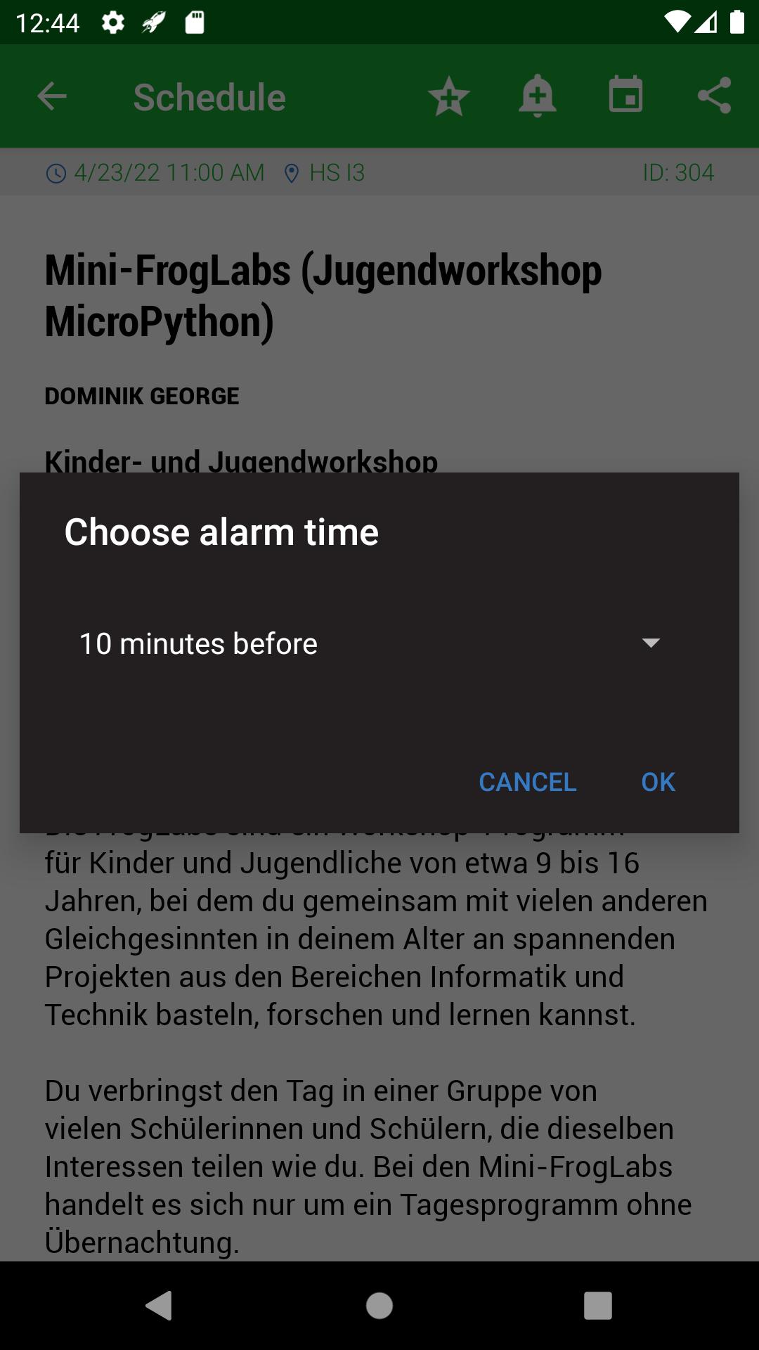 ✓ Baca deskripsi terperinci (nama speaker, waktu mulai, nama kamar, tautan, ...) dari acara