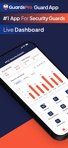 Aplikasi GuardPro Guard adalah aplikasi seluler intuitif untuk penjaga keamanan yang merupakan bagian dari platform keamanan fisik GuardPro. Ini dirancang untuk merampingkan operasi keamanan di setiap tingkat perusahaan patroli swasta. Penjaga keamanan dapat menggunakan aplikasi GuardPro Guard untuk mengirimkan laporan, jam log menggunakan jam waktu, mengakses jadwal mereka, membuat pass-down, mengkonfirmasi pesanan pos, berkomunikasi dengan tim keamanan mereka dan banyak lagi.