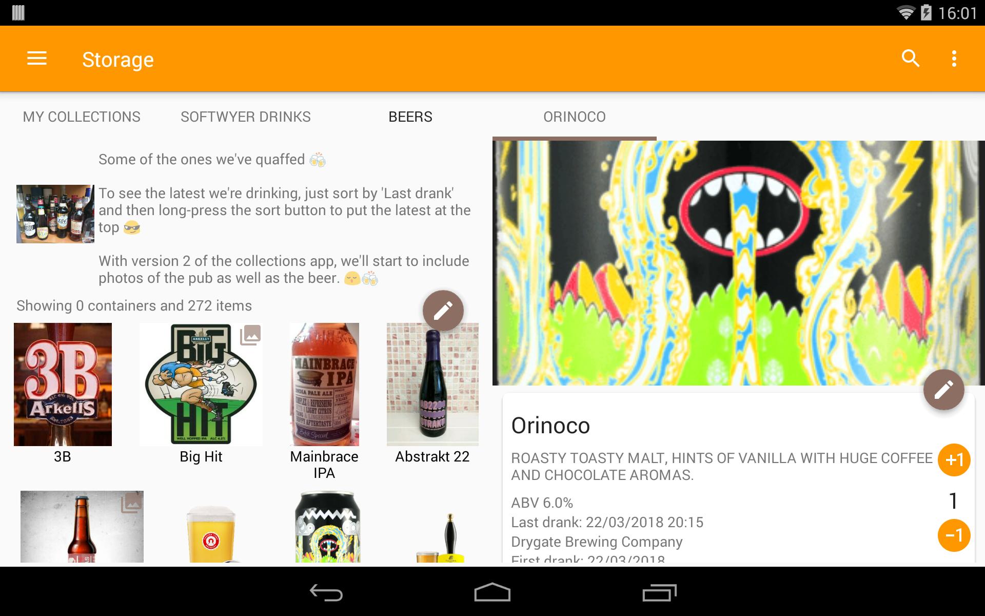* Item memiliki nama, deskripsi, kuantitas, dan bidang kedaluwarsa. Kuantitas memiliki tombol akses yang mudah untuk bertambah dan berkurang (pikirkan bohlam keluar dari kotak dan mengurangi jumlah item menjadi satu).