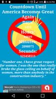 Apakah Anda sangat kecewa dengan pilihan Amerika untuk memilih Donald Trump? Apakah Anda menghitung hari sampai pemilihan berikutnya? Apakah Anda ingin beberapa pengingat mengapa Anda tidak menyukai Donald Trump? Jika demikian, ini adalah aplikasi untuk Anda. Tidak hanya menghitung mundur sampai hari pemilihan berikutnya, tetapi juga menunjukkan kepada Anda kutipan Donald Trump acak saat Anda membuka dan menutup aplikasi.