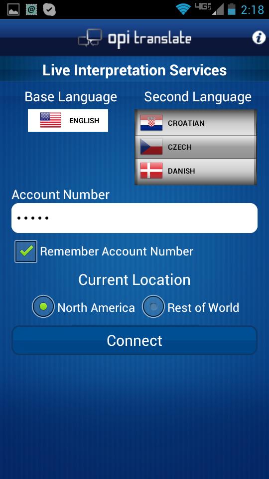 Layanan OPI memberi pengguna akses satu tombol ke penerjemah hidup yang fasih dalam terminologi medis, hukum, pemerintah dan keuangan-yang mampu menafsirkan antara bahasa Inggris dan lebih dari 150 bahasa asing. Yang Anda lakukan hanyalah memilih pasangan bahasa, ketuk tombol dan dalam hitungan detik seorang penerjemah akan ada di sana untuk membantu Anda dengan kebutuhan bilingual panggilan di tempat dan konferensi. Semudah itu dan mengapa kami mengatakan "itu satu -satunya penerjemah yang Anda butuhkan".
