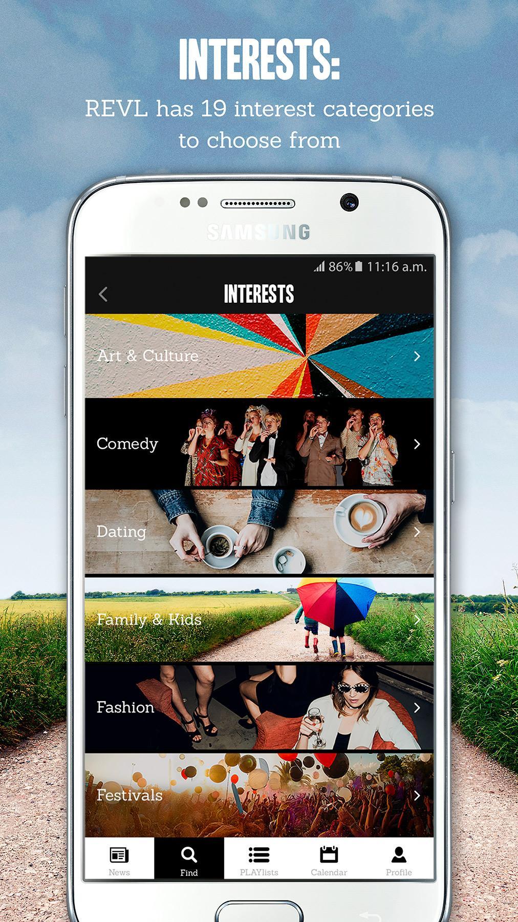 Aplikasi Penemuan Acara yang pribadi bagi Anda. Revl adalah aplikasi masuk Anda untuk menemukan acara terpanas yang terjadi di seluruh Inggris. Dari London ke Liverpool, Manchester ke Edinburgh, Birmingham ke Bristol, menemukan acara di kota Anda.